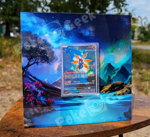 Iron Moth Paradox Rift Extended Art Frame is speciaal ontworpen voor verzamelaars en fans van unieke Pokémonkaarten. Het klassieke ontwerp is uitgebreid tot een 20x20cm extended art frame, geprint op hoogwaardig materiaal voor een luxe uitstraling. (Kaart niet inbegrepen)
